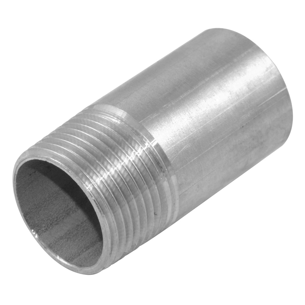 Anschweißnippel aus Edelstahl mit Außengewinde. Anschweißnippel besitzen einseitig ein Außengewinde um sie mit Gewindefittings zu verbinden. Die andere Seite kommt ohne Gewinde daher und ist mit angeschrägter Kante versehen, die das Verschweißen der Seite erleichtert. Edelstahl Anschweißnippel finden in allen gängigen Installationen von Industrie und Handwerk sowie den Installationen in Haus und Garten Anwendung. Fittings aus Edelstahl eignen sich hervorragend für die Wasser- und Trinkwasserversorgung oder der Installation der Heizanlage. Auch für Flüssigkeiten auf Öl-Basis geeignet.