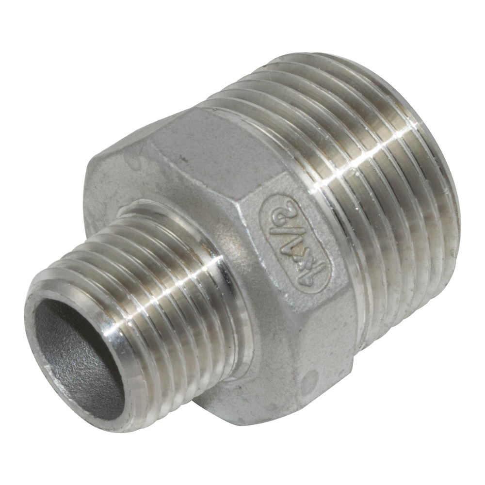 Reduzierstück aus Edelstahl mit Innengewinde. Reduzierstücke sind das ideale Mittel um Fittings mit Innengewinde in unterschiedlicher Größe miteinander zu Verbinden. So können Sie beispielsweise Fittings mit kleinerem oder größeren Durchmesser in Ihre bestehende Anlage integrieren. Edelstahl Reduzierstücke finden in allen gängigen Installationen von Haus, Hof und Garten sowie der Industrie Anwendung. Fittings aus Edelstahl eignen sich hervorragend für die Wasser- und Trinkwasserversorgung oder der Installation der Heizanlage. Auch für Flüssigkeiten auf Öl-Basis geeignet.