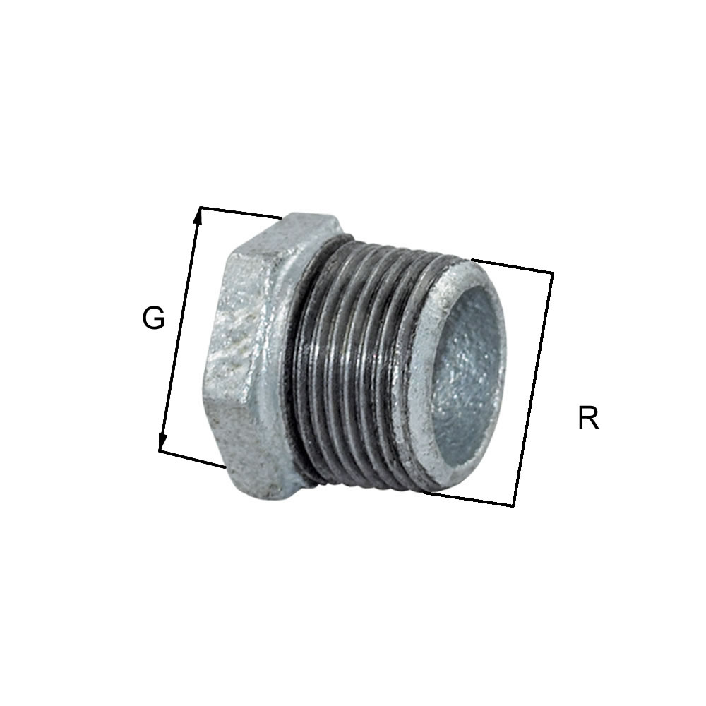 Reduziernippel, Temperguss, verzinkt AG 1/2" und IG 3/8" #241