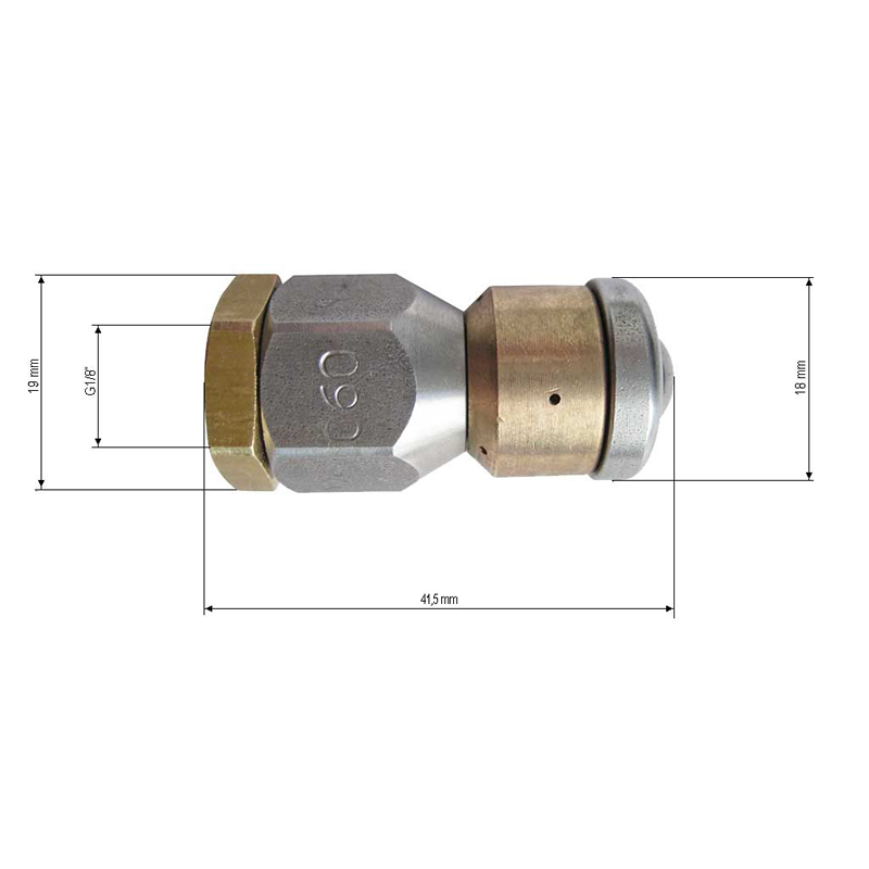 Rotierende Rohrreinigungsdüse mit G1/8" Innengewinde uns passend für Rohrreinigungsschläuche mit der Nennweite 5.