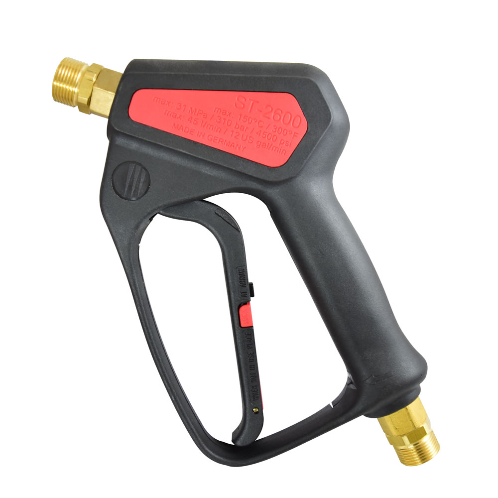 Diese Hochdruckpistole mit Komfort-Technologie erlaubt ein ermüdungsfreies Arbeiten durch eine 90% geringere Haltekraft und 40% weniger Abzugskraft. Damit ist die Komfort-Pistole ein Muss für professionelles Arbeiten. Mit ihrem M22x1,5 Anschluss passt die Pistole an die gängigen Geräte von Kärcher und Kränzle und lässt sich ebenso mit Hochdruckreinigern und Anbauteilen anderer Marken verwenden. An der Eingangsseite wird der Hochdruckreinigerschlauch angeschlossen und am Ausgang z.B. ein Sprührohr oder eine Düse.