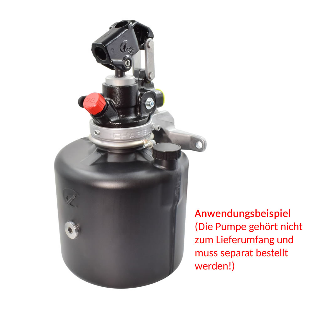Die Hydraulik-Handpumpe ist auf dem Tank stufenlos montierbar (360°)