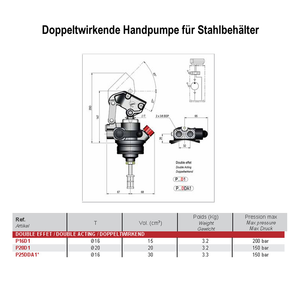 Hydraulikhandpumpe, doppeltwirkend