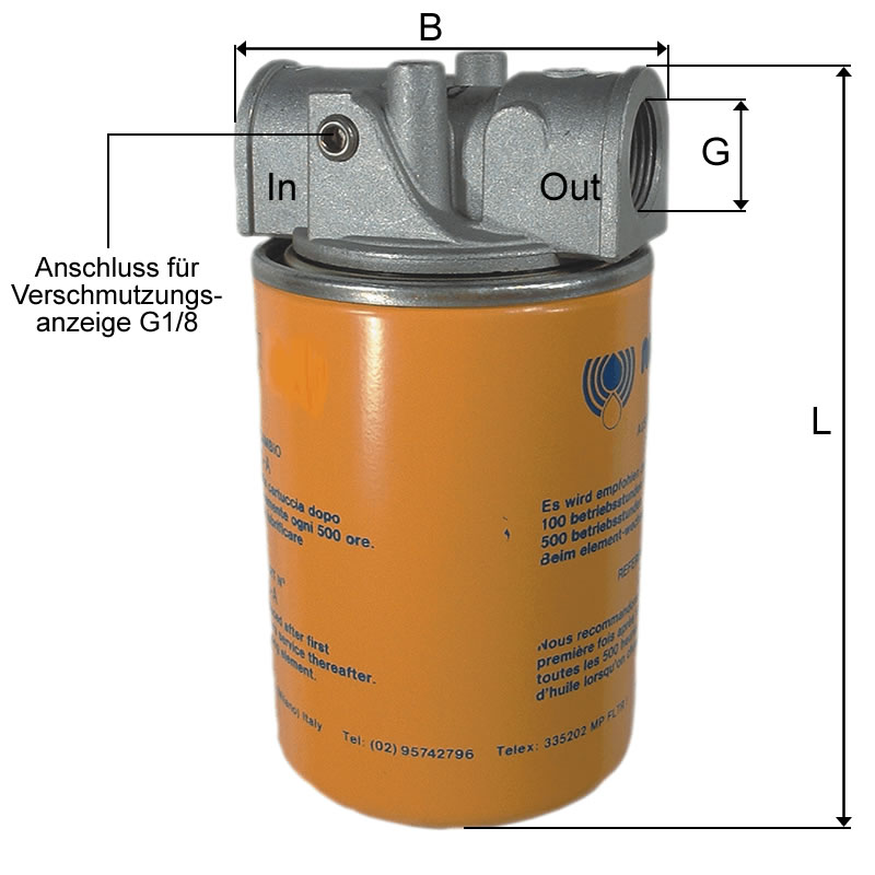 Hydraulikfilter (Saugfilter) für Leitungsmontage mit einer Filterfeinheit von 25 µm und einem Nenndurchfluss von 120 l/min. Maximaler Betriebsdruck beträgt 12 bar.