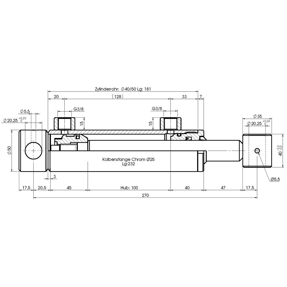 Hydraulikzylinder doppeltwirkend - Hub 100mm, Druckkraft ca. 2,5 Tonnen, 200bar