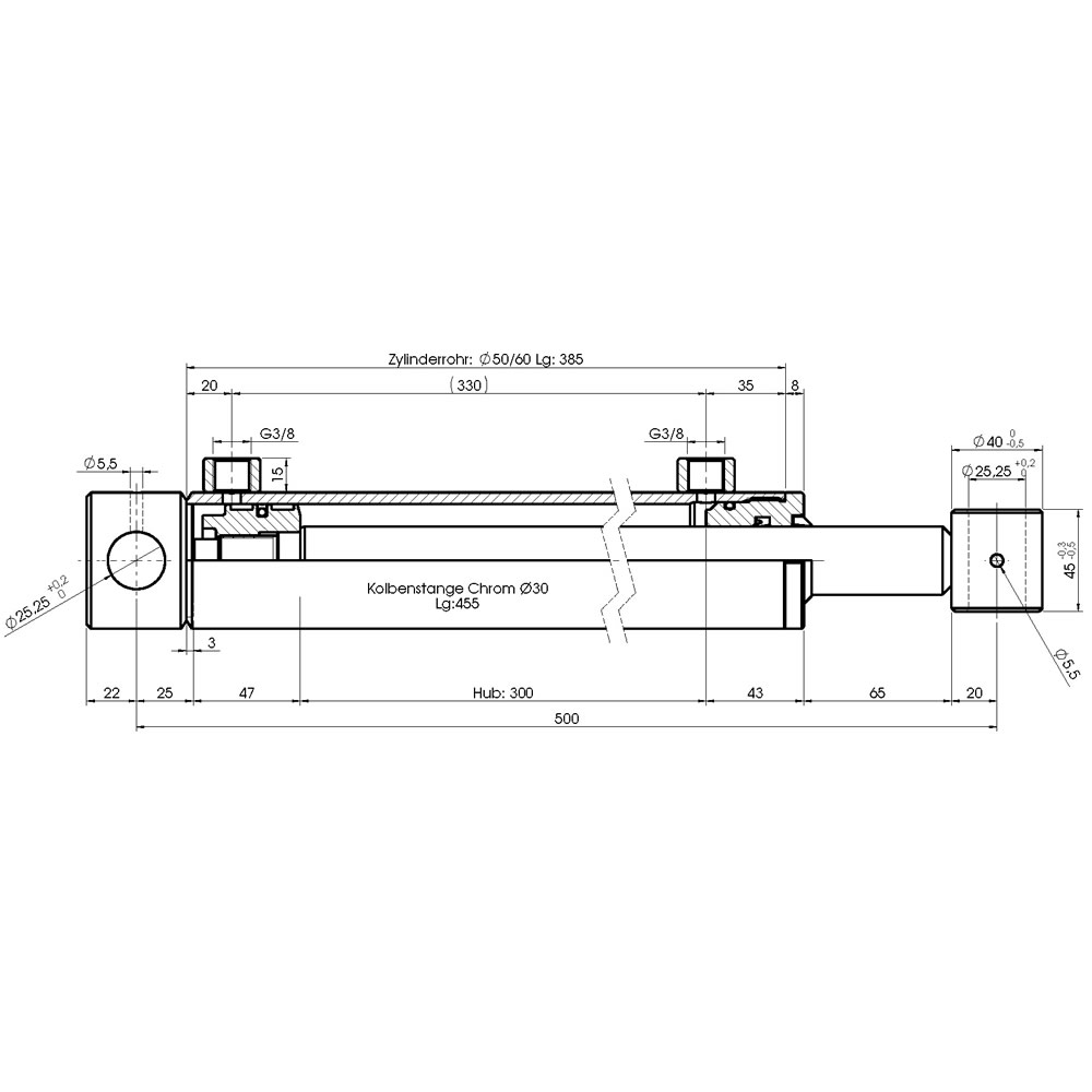 Hydraulikzylinder doppeltwirkend - Hub 300mm, Druckkraft ca. 3,9 Tonnen, 200bar