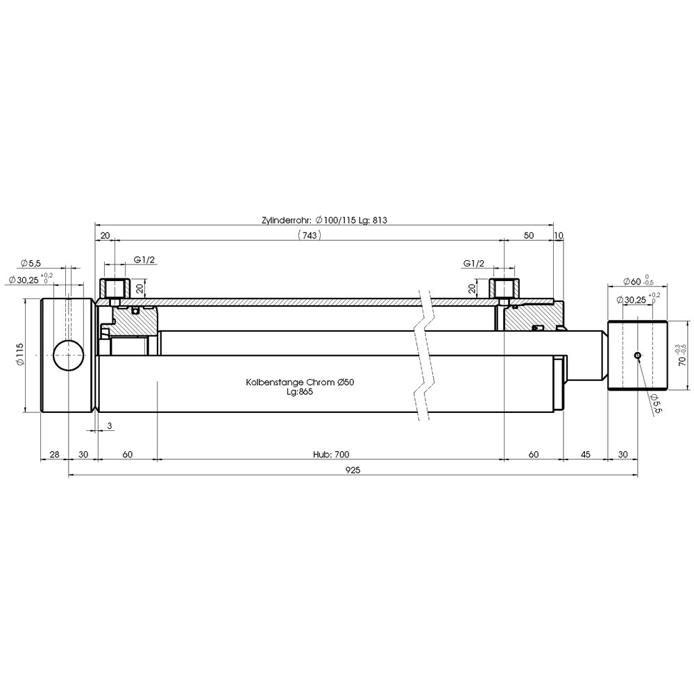 Hydraulikzylinder doppeltwirkend - Hub 700mm, Druckkraft ca. 15,7 t, 200bar
