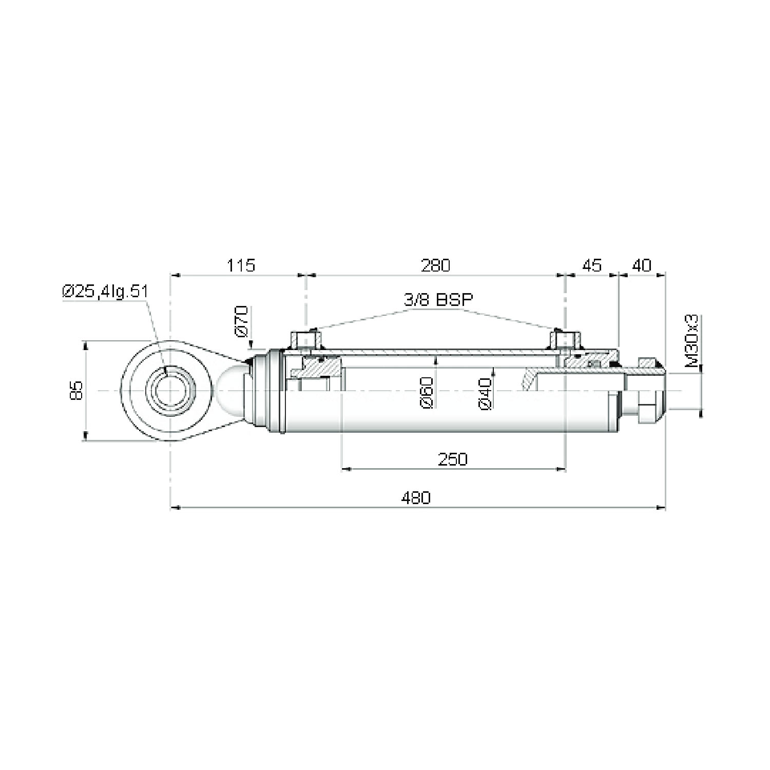 Hydraulischer Oberlenker Kat. 2, bis 51kW (70 PS), Hub 250mm