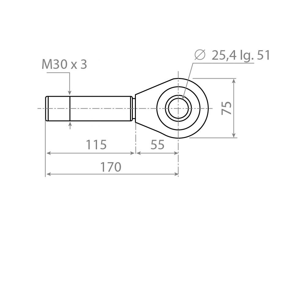 Mit Innengewinde M30 x 3, dadurch besteht die Möglichkeit zur Ausstattung mit einem weiteren Kugelgelenk oder Fanghaken.