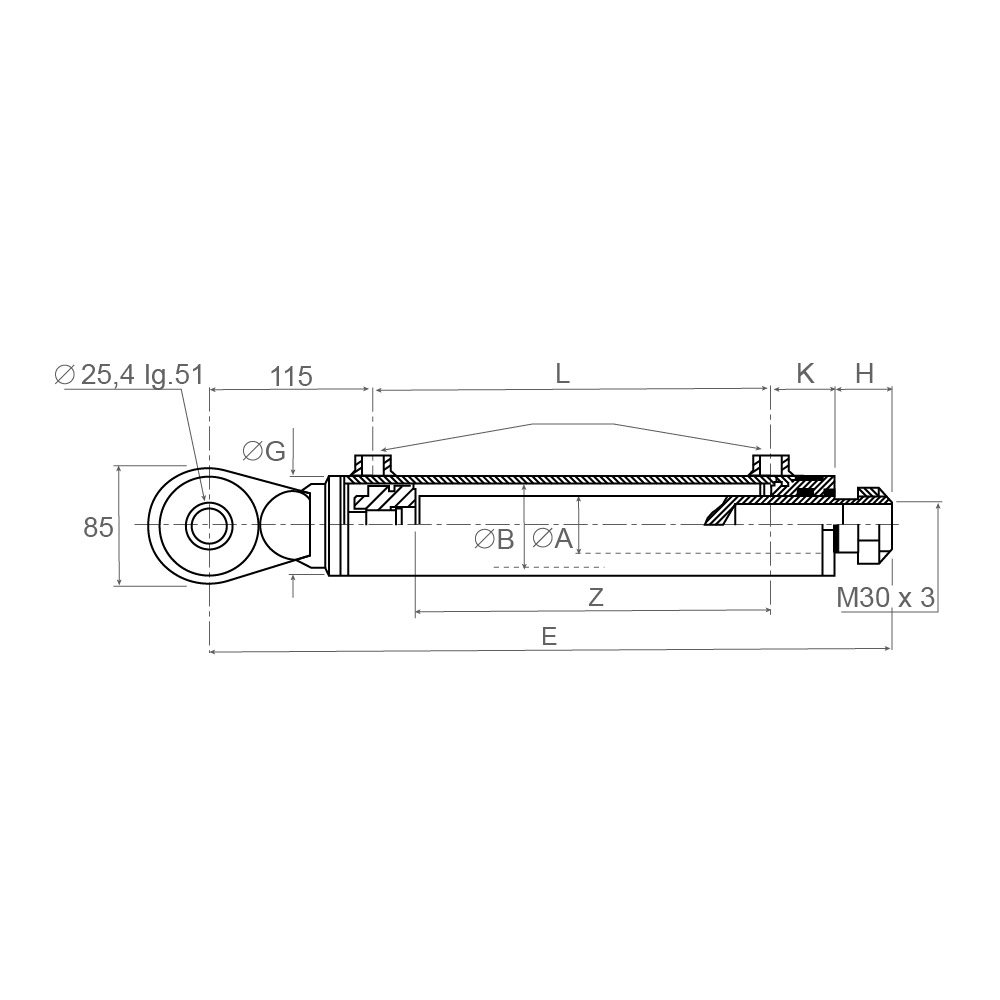 Mit Außengewinde M30 x 3, zum Einschrauben in den hydraulischen Oberlenker Kat. 2.