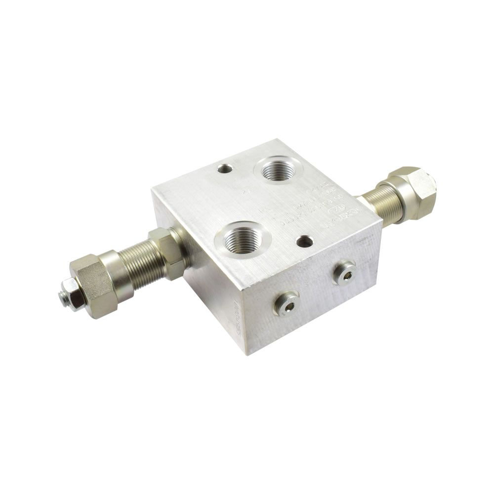 Dieses Ventil besteht aus zwei direkt gesteuerten Druckbegrenzungsventilpatronen. Es ist empfehlenswert für den kontinuierlichen Einsatz oder als Überdruckventil.