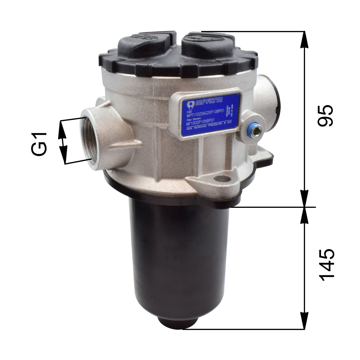 Der Rücklauffilter mit Bypassventil 1,75 bar ist für den Einbau in Rücklaufleitungen konzipiert und wird direkt, mit seinem Unterteil in den Tank hineinragend, auf den Ölbehälter aufgesetzt.