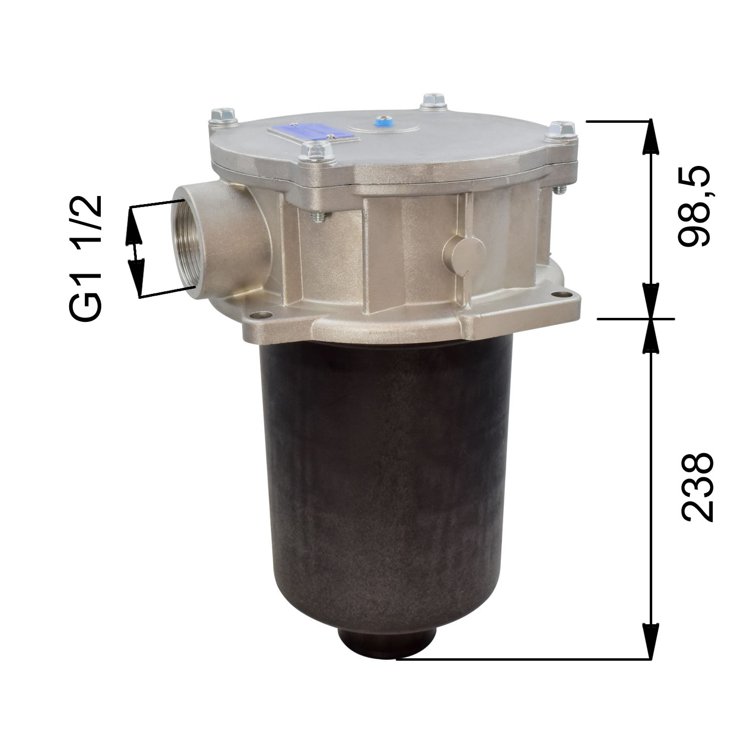 Der Rücklauffilter mit Bypassventil 1,75 bar ist für den Einbau in Rücklaufleitungen konzipiert und wird direkt, mit seinem Unterteil in den Tank hineinragend, auf den Ölbehälter aufgesetzt.
