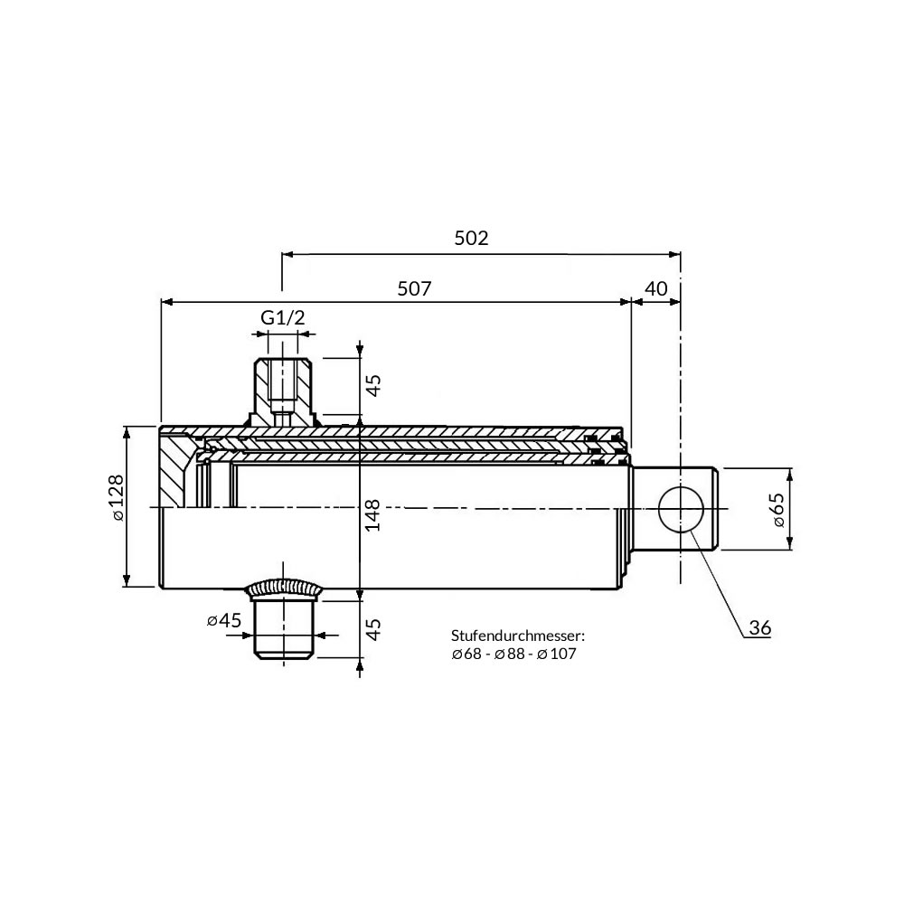 Einfachwirkender Teleskopzylinder, dreistufig, Hub 1160mm