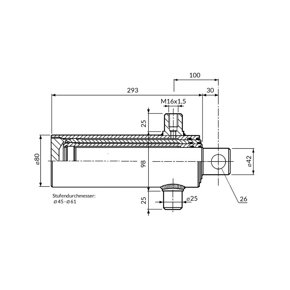 Einfachwirkender Teleskopzylinder, zweistufig, Hub 390mm
