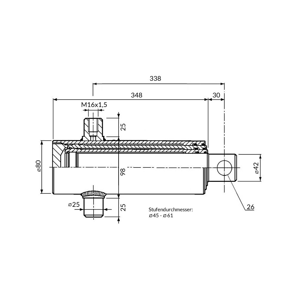 Einfachwirkender Teleskopzylinder, zweistufig, Hub 500mm