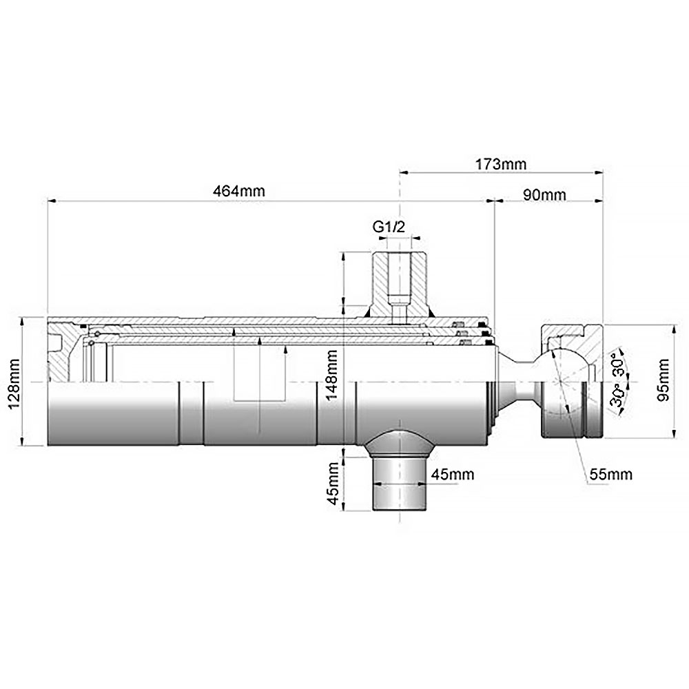 Dieser einfachwirkende Teleskopzylinder mit Kugelgelenk ist ein Qualitätsprodukt der Marke Chapel.