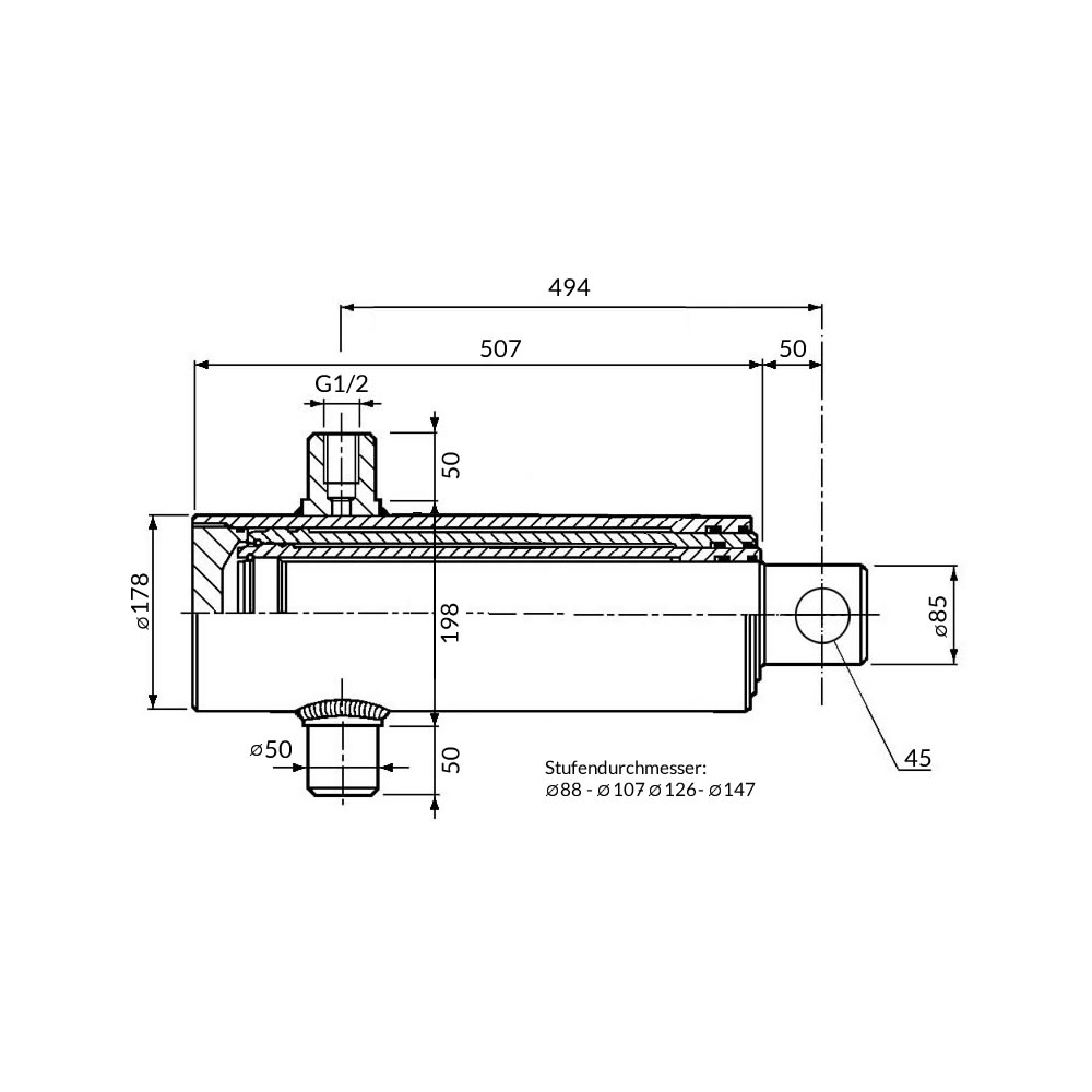 • Druckkraft 4. Stufe: 339,4kN bei 200bar