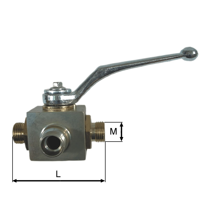 3-Wege-Hochdruck-Kugelhahn M22x1,5 mit L-Bohrung, leichte Reihe