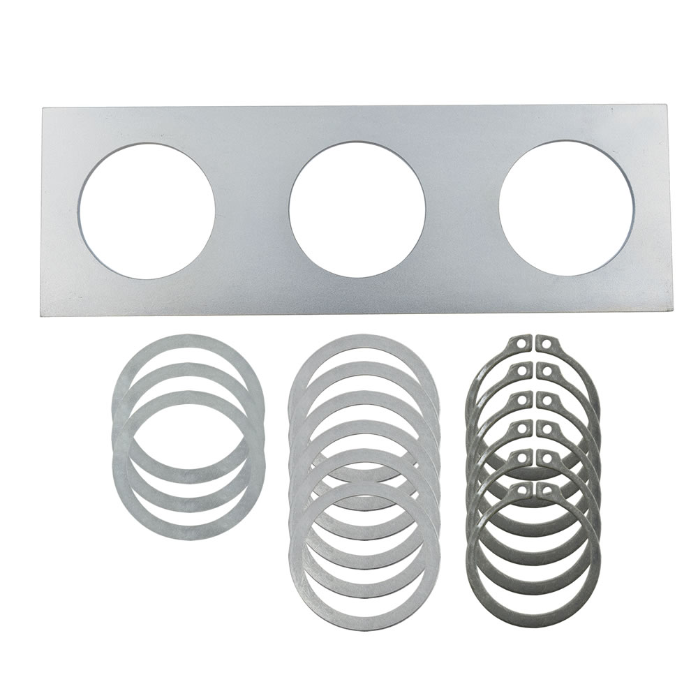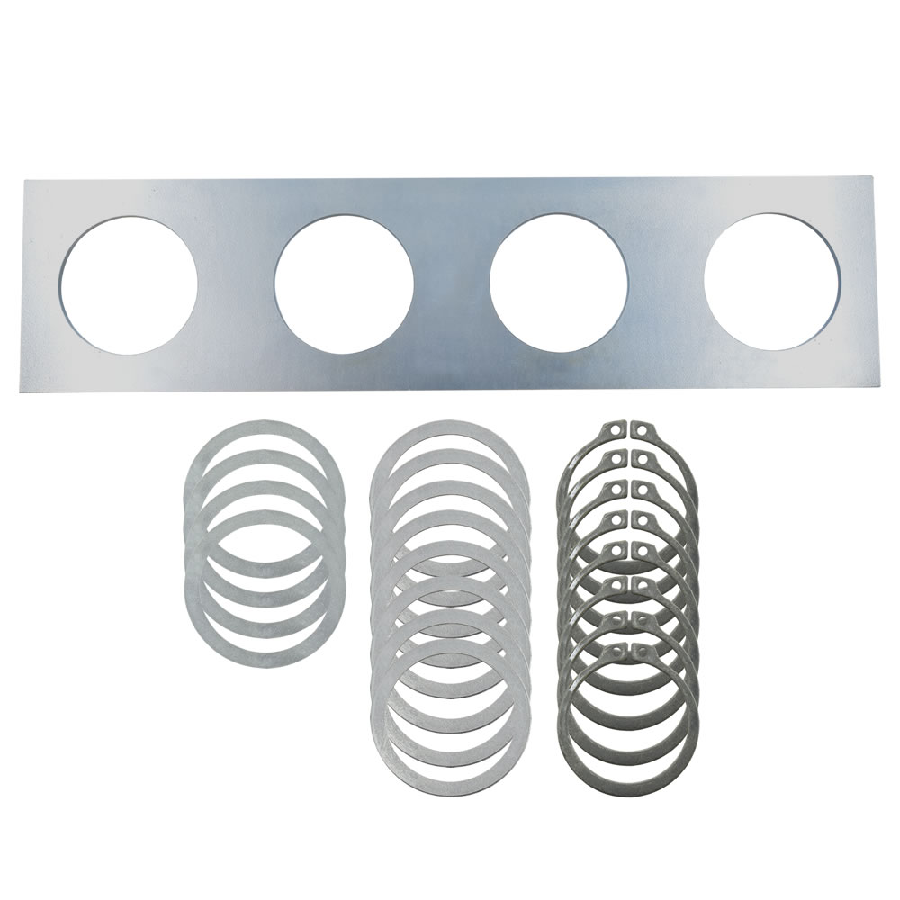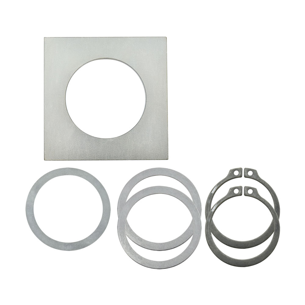 Auslieferung erfolgt mit 2 Seegerringen und 2 Passscheiben pro Bohrung.