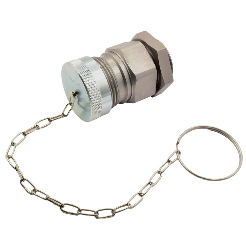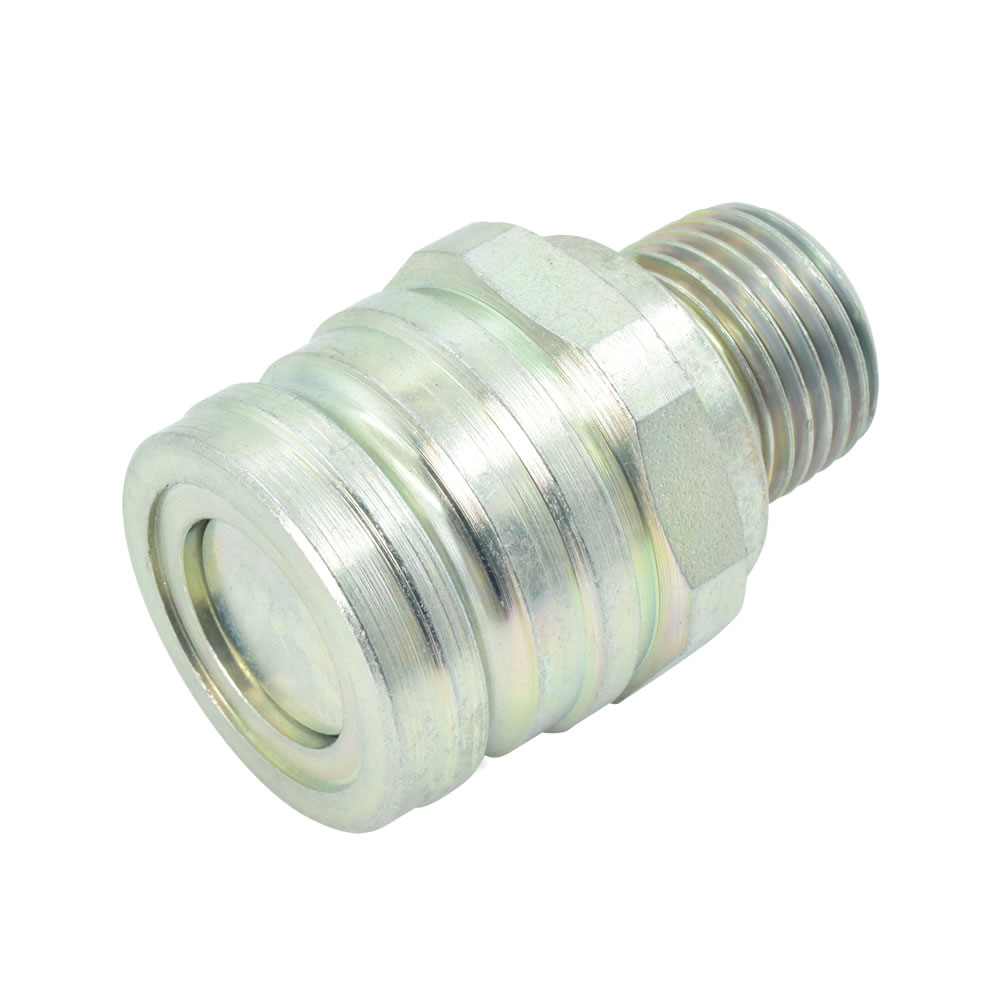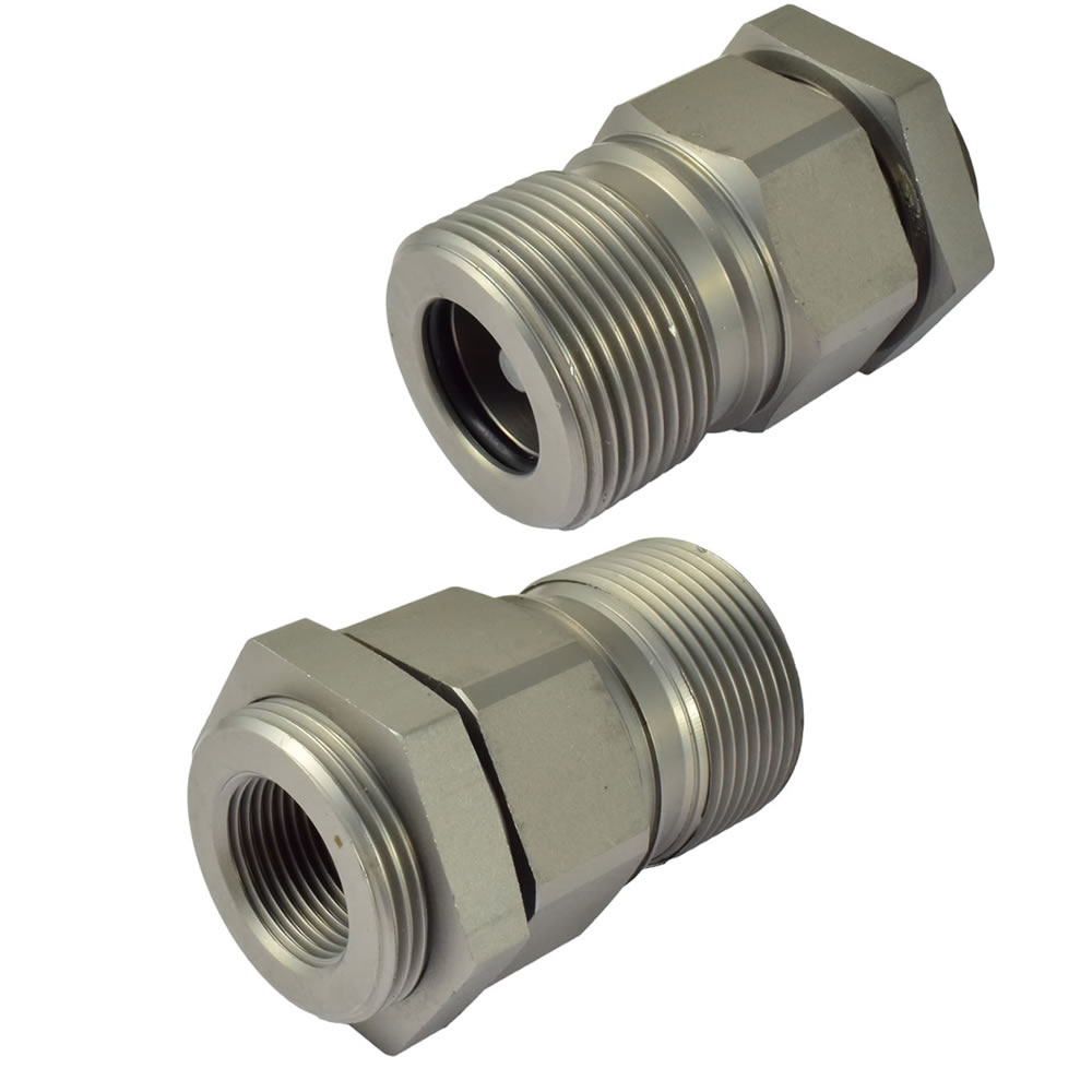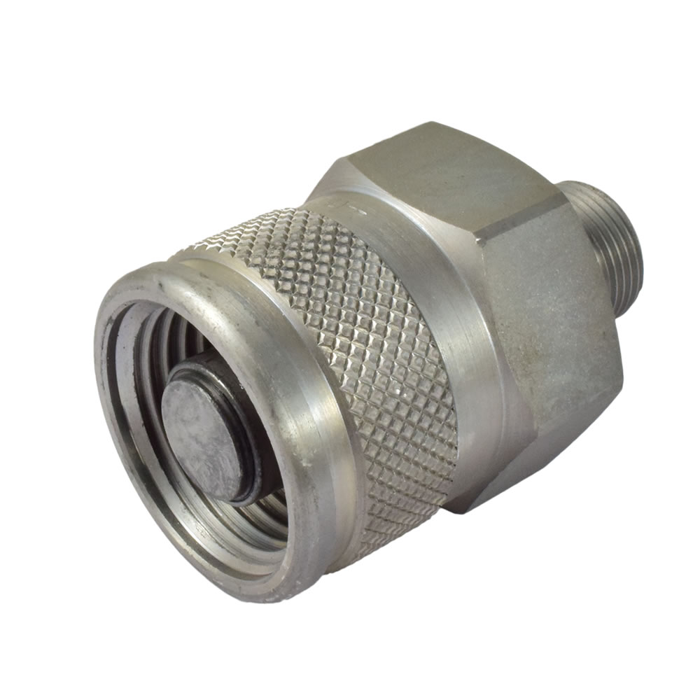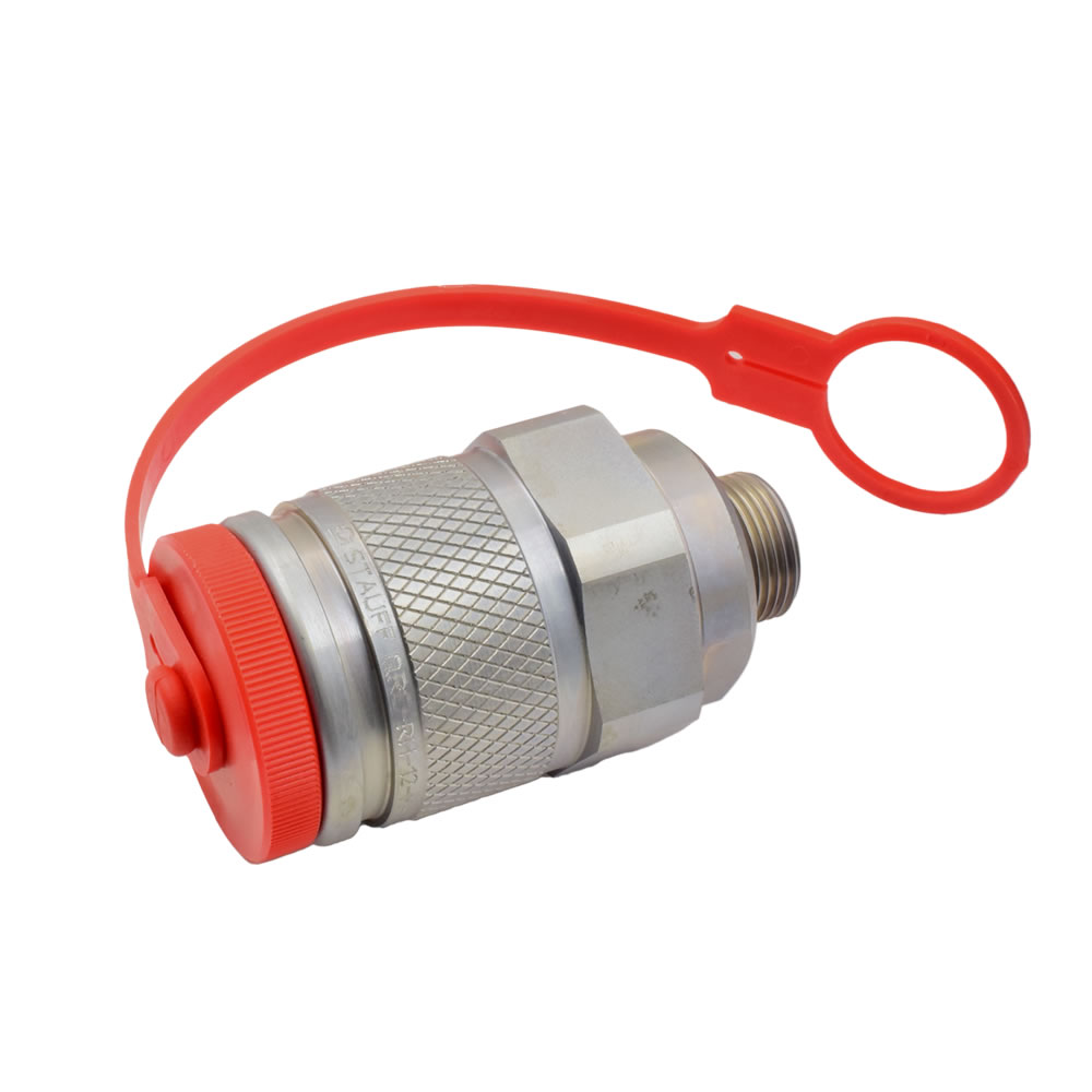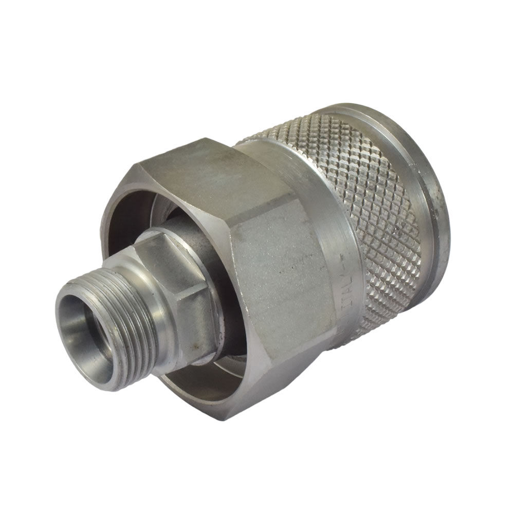 Die Kupplung wird vorwiegend in der Industrie bei Baumaschinen eingesetzt. Kuppeln und Entkuppeln durch Verschrauben. Stecker und Muffe sind unter Druck kuppelbar. Beidseitig absperrend: Kegelventil.