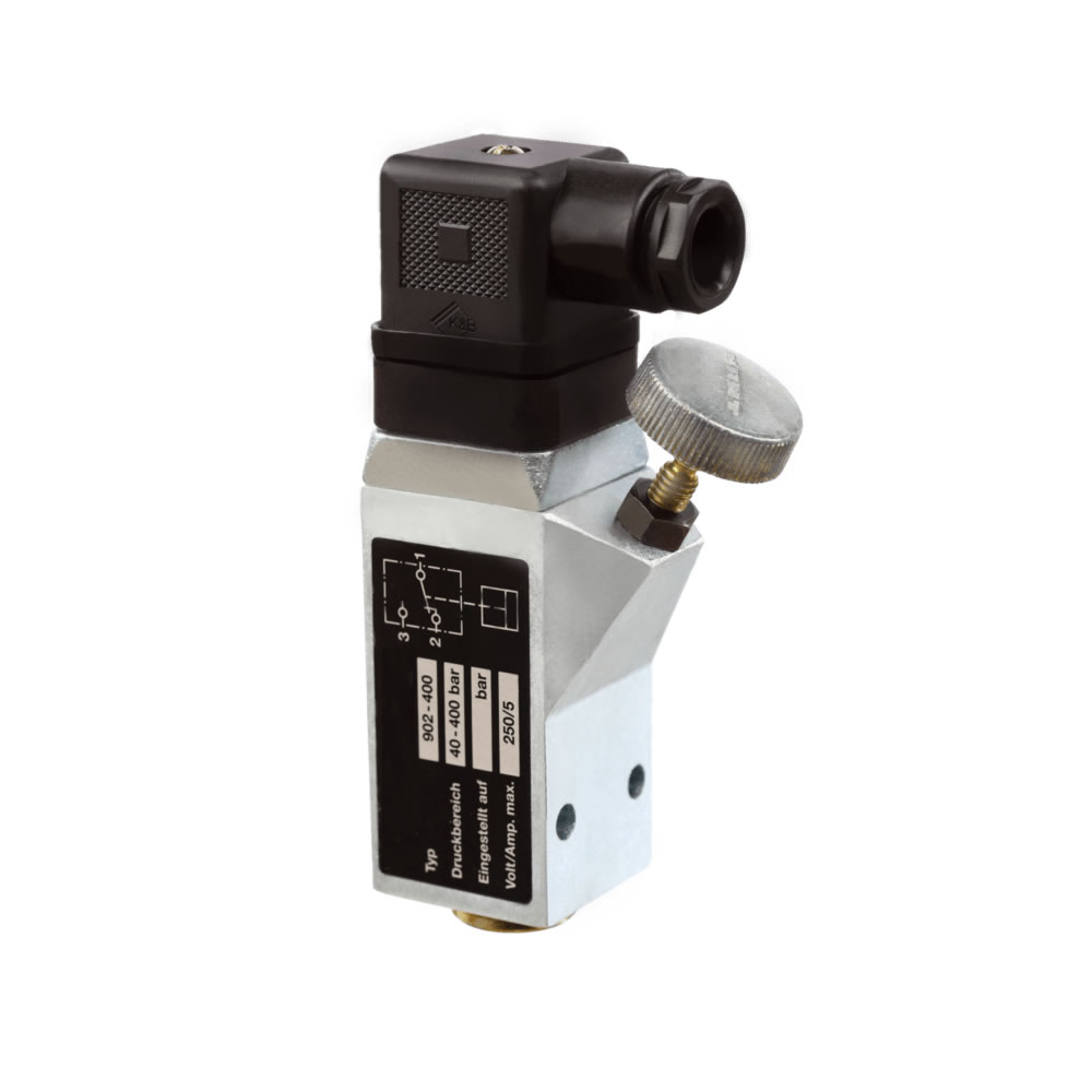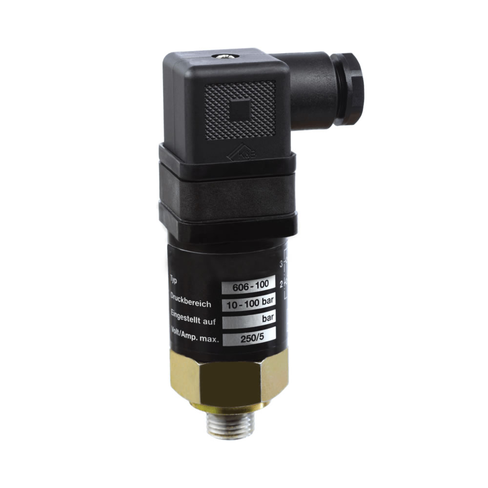 Druckschalter haben einen integrierten elektrischen Schalter, ausgeführt als Schließer (NO), Öffner (NC) oder Wechsler. Durch Anlegen eines Druckes wird eine Membrane verformt, oder ein Kolben über eine Hubbewegung verlagert. Mehr über Druckschalter