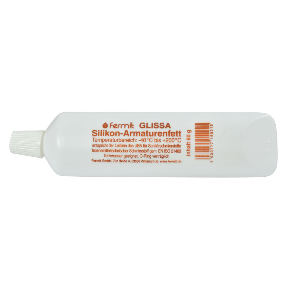 Das Glissa-Silikonfett ist ein nichttropfendes Schmierfett und eignet sich als Schmier- und Dichtmittel für Trinkwasserarmaturen (z.B. Kartuschen von Einhebelmischern, Schaltventile und Schwenkausläufe).