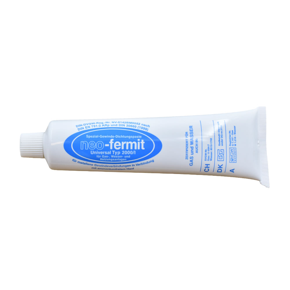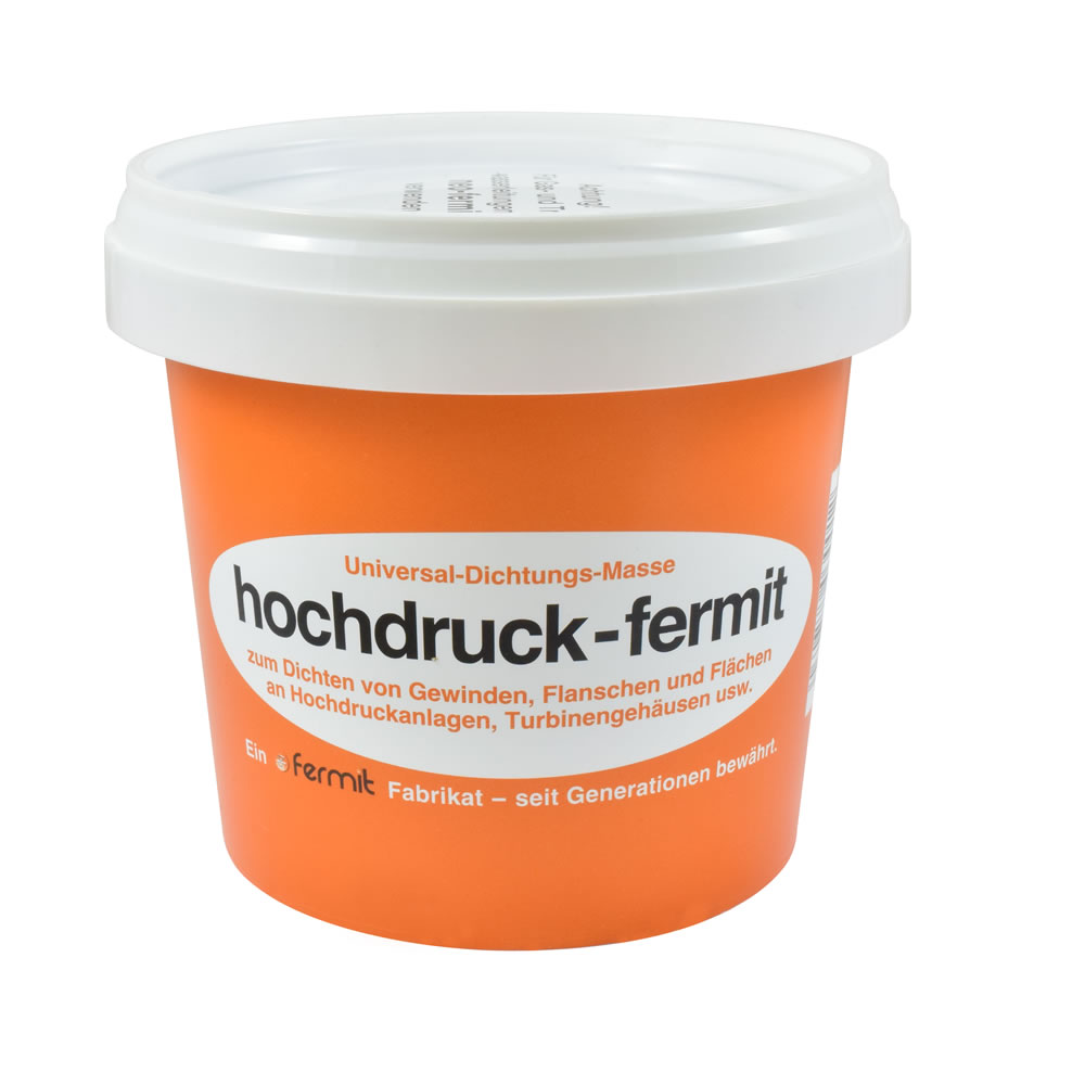 Die druck- und hitzebeständige Dichtungspaste Hochdruck-Fermit eignet sich zum um Dichten von Gewinden, Flanschen und Flächen an Hochdruckanlagen, Turbinen-Gehäusen Dampfleitungen usw., auch in Verbindung mit Hanf.
