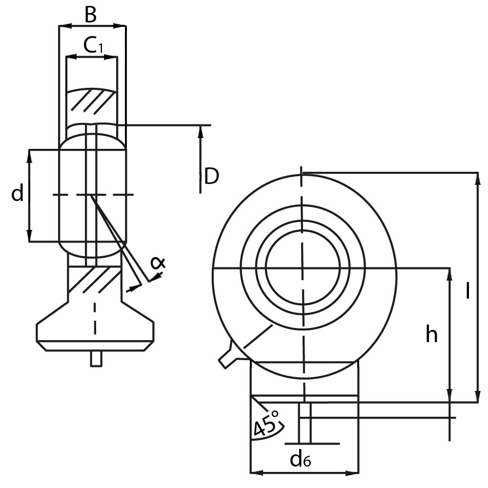 Anschweißbarer Hydraulikgelenkkopf DIN 648