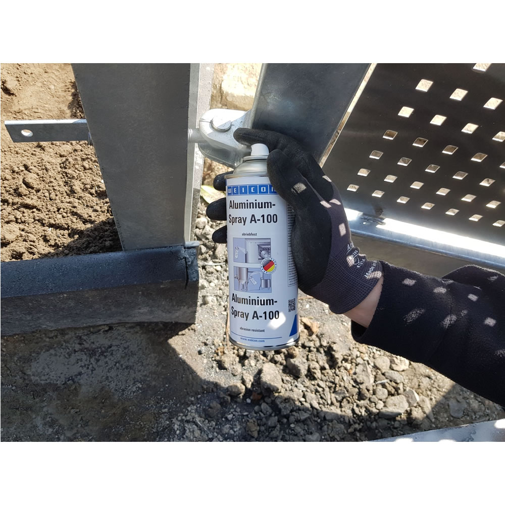 Das Aluminiumspray von WEICON enthält Alu-Pigmente mit einem Reinheitsgrad von ca. 99,5% und bietet einen hochwertigen Korrosionsschutz für alle metallischen Oberflächen. Es ist beständig gegenüber vielen verdünnten Säuren und Laugen sowie gegen Witterungseinflüsse. Die Temperaturbeständigkeit beträgt 800°C.