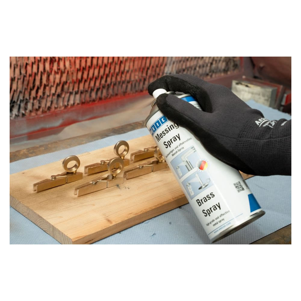 Das Messingspray von WEICON ist eine reine Metallbeschichtung im messingtypischen Farbton. Geeignet zum Schutz und zur optischen Aufwertung unter- schiedlicher Materialien.