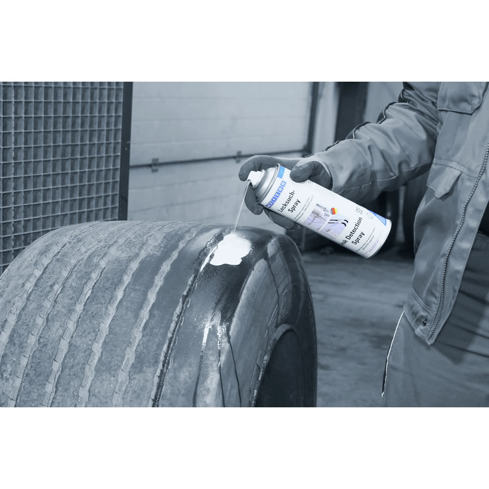 WEICON Lecksuch-Spray kann überall, wo mit Druckluft, Erd- oder Flüssiggas gearbeitet wird, wo undichte Stellen an Armaturen, Verschraubungen und Anschlüssen auftreten können und als hoher Sicherheitsbeitrag an Druckluftbremsen und Gasleitungen eingesetzt werden.