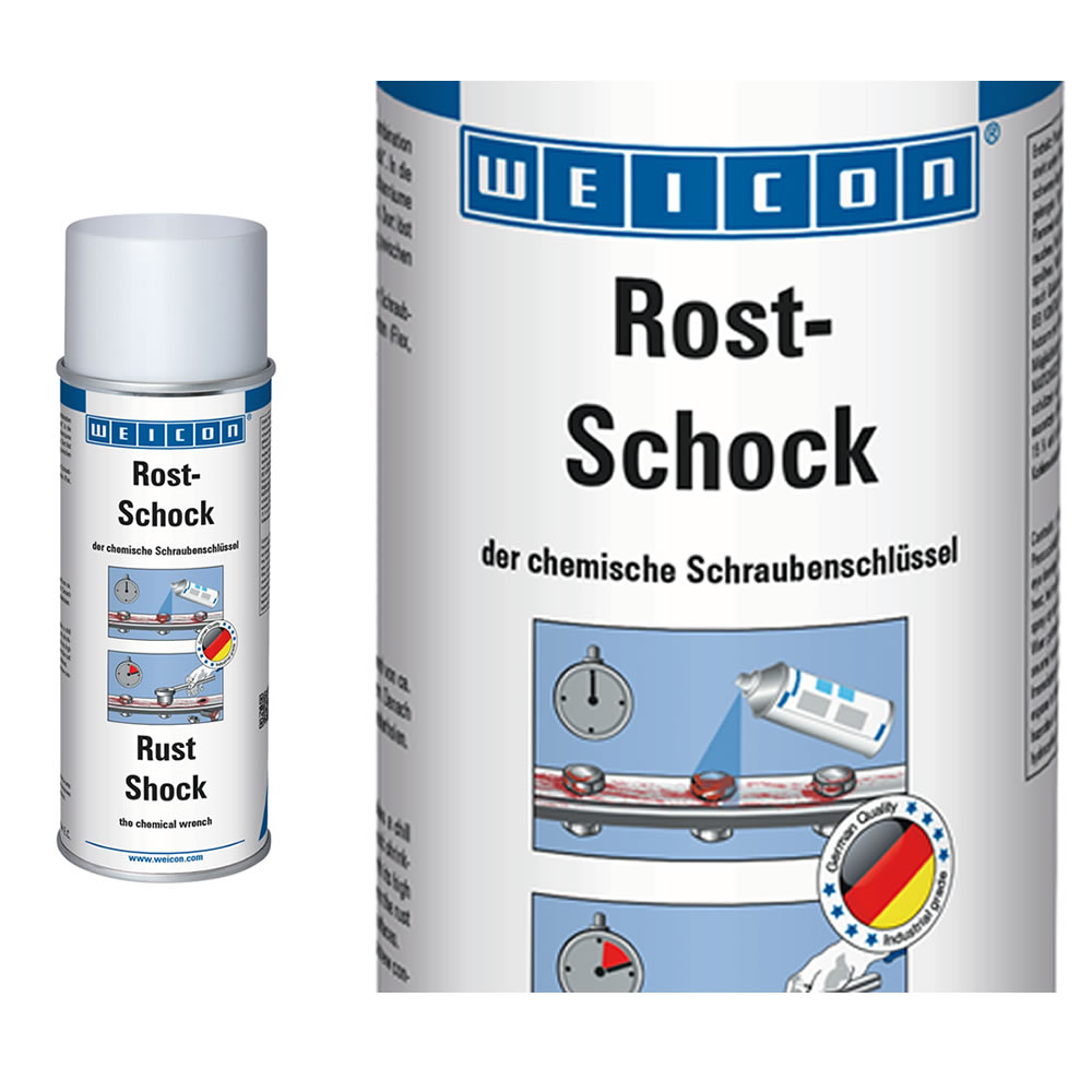 WEICON Rost-Schock löst in Sekunden wie ein "chemischer Schraubenschlüssel" festgerostete Verschraubungen aller Art. Er wirkt sekundenschnell. Dies beruht auf seiner 2-fach-Funktion: